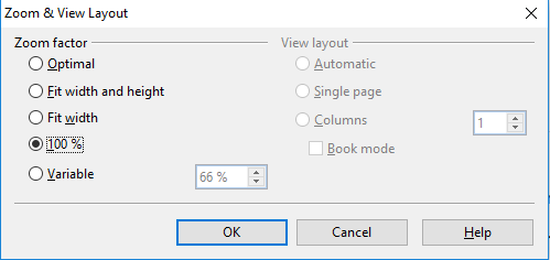 - Zoom & View layout (double click on zoom factor in the footer) -> Zoom factor 100%