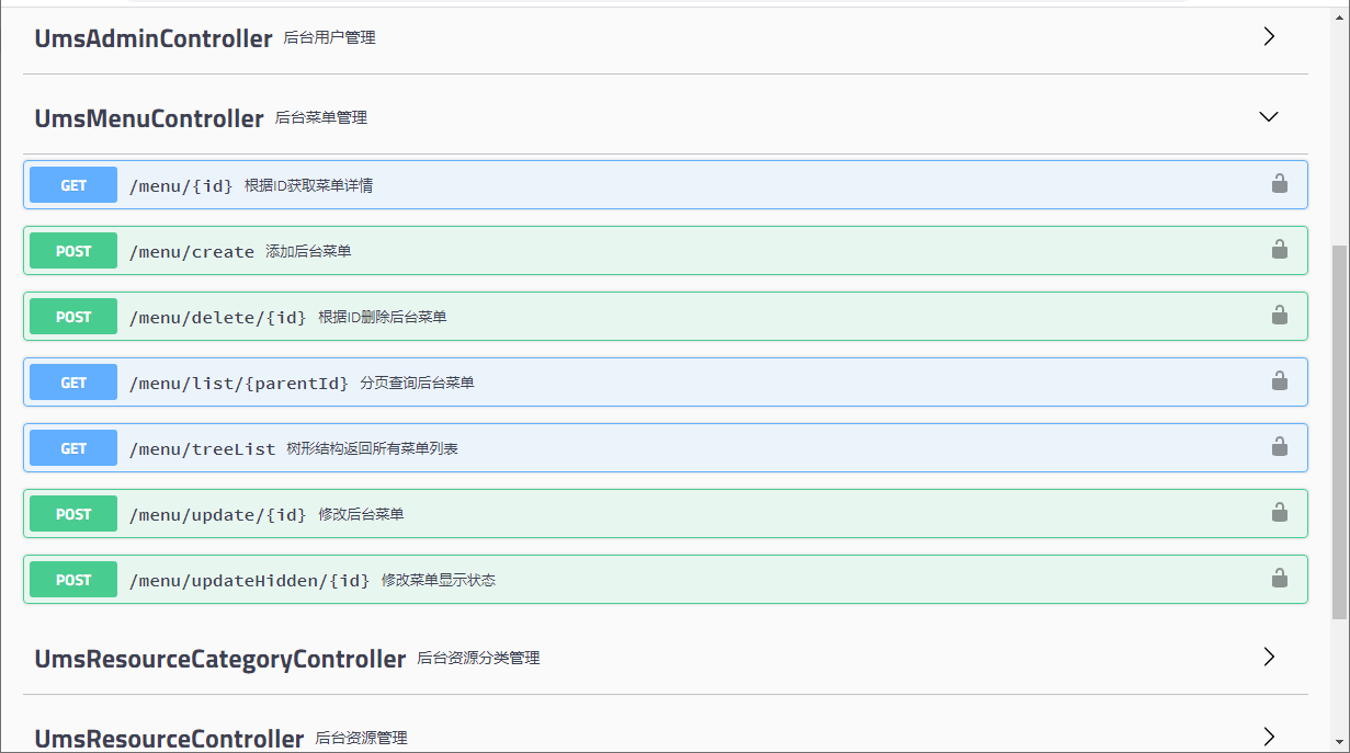 具体参数及返回结果定义可以运行代码查看Swagger-UI的Api文档:http://localhost:8080/swagger-ui.html