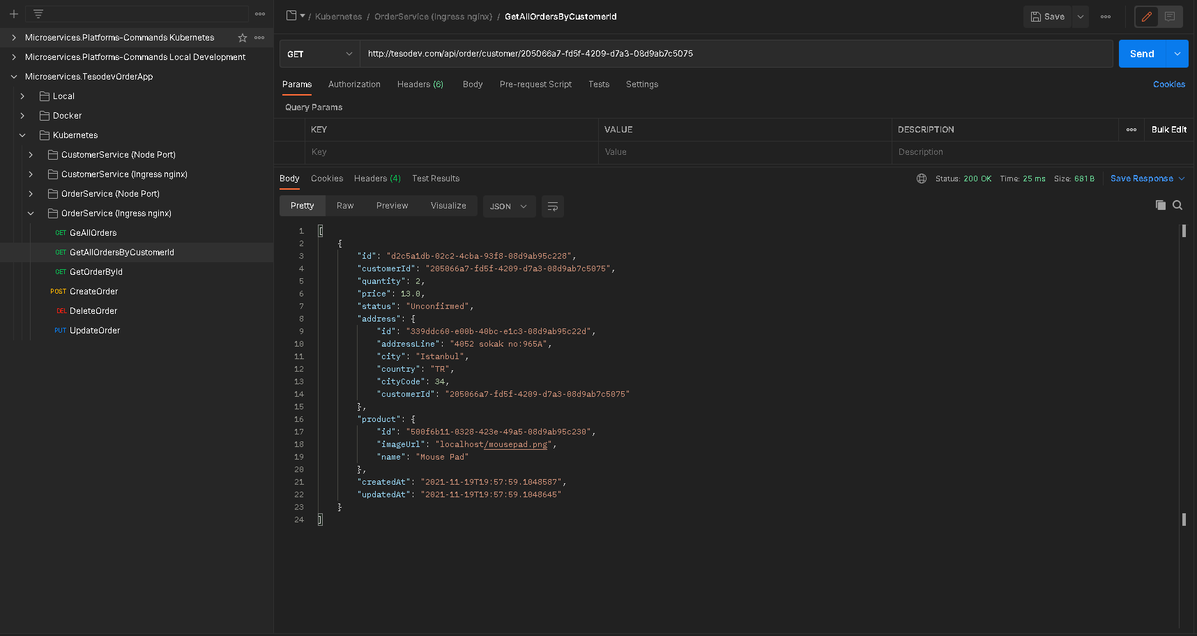 TESODEV needs a micro service implementation for order and customer domains. We need to apply two simple micro service for the customers and orders which should be easy to use and robust for frequent usage. In this project, the main goal is to understand the ability of backend architecture and micro service knowledge.