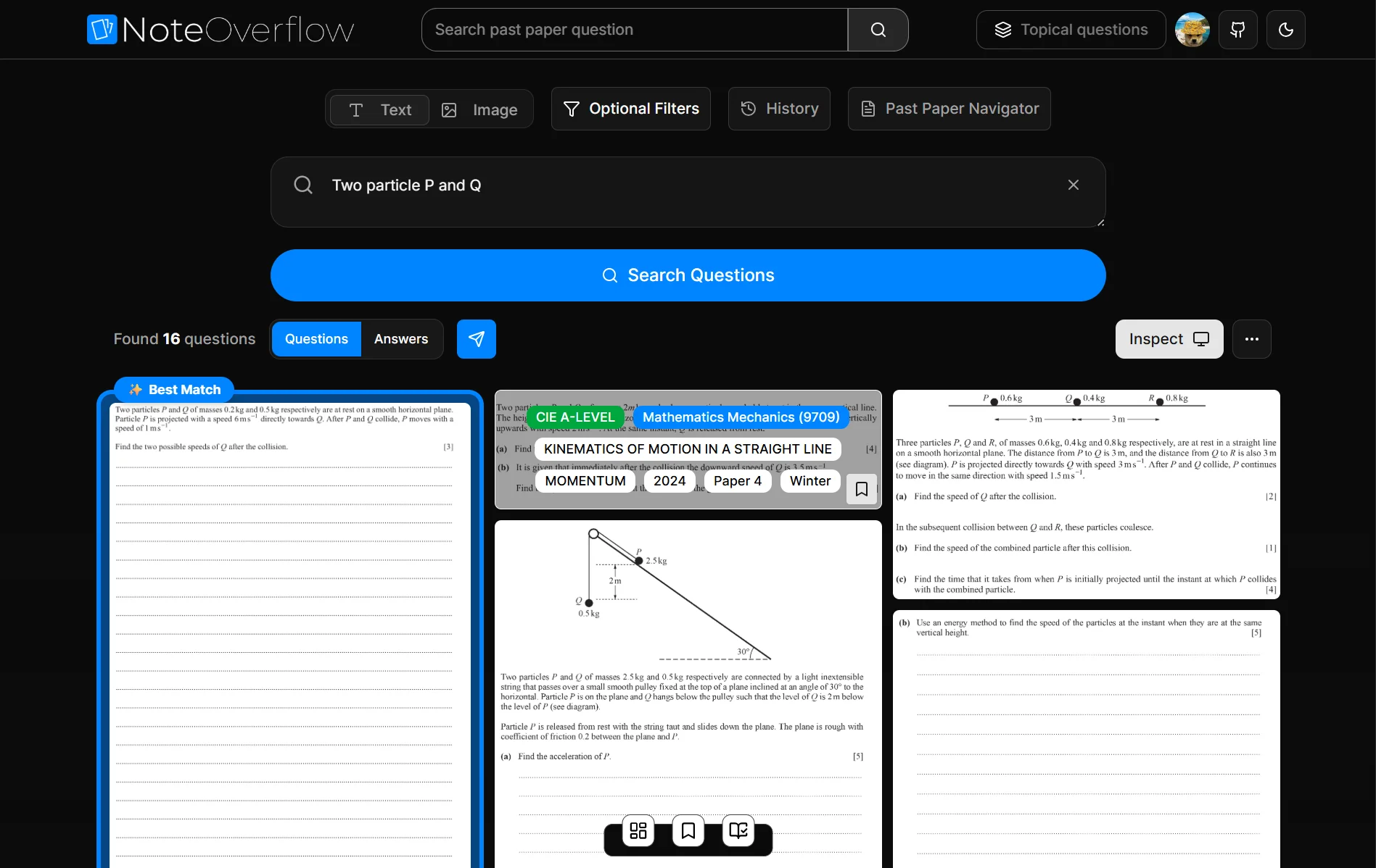 - 📚 Topical Question Browser: Filter and browse past paper questions by curriculum (IGCSE/A-Level), subject, topic, year, paper type (P1, P2, P3, etc.), and season (Summer/Winter/Spring).