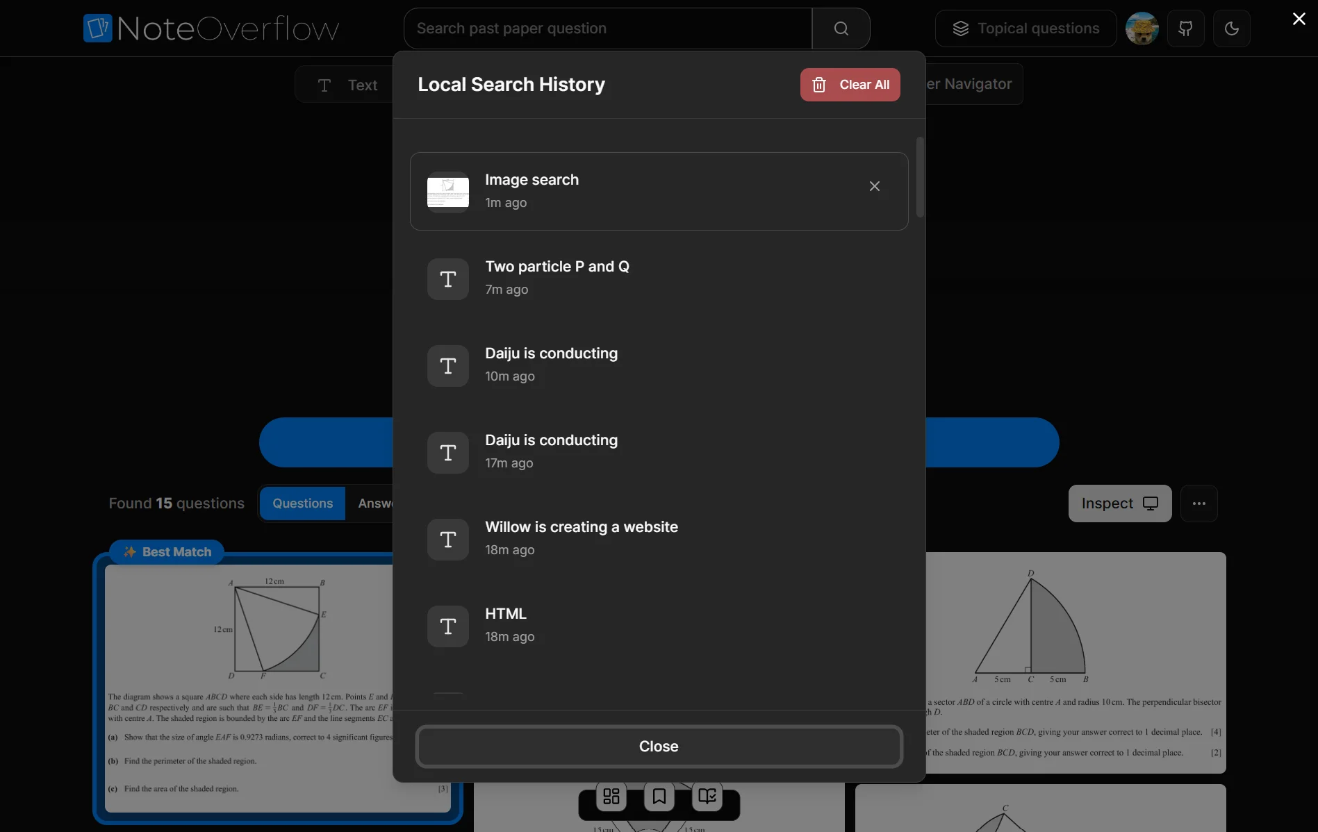 🧠 AI-Powered Semantic Search: Search for questions using natural language or by uploading an image. NoteOverflow uses advanced vector embeddings to understand the context of your query, allowing you to find specific questions even if you don't know the exact wording.