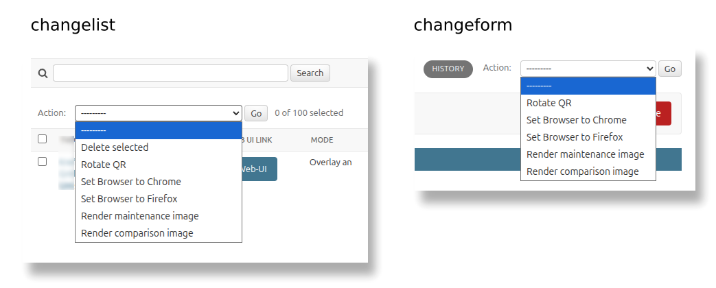 dropdown (available on a model's changelist page) on each model