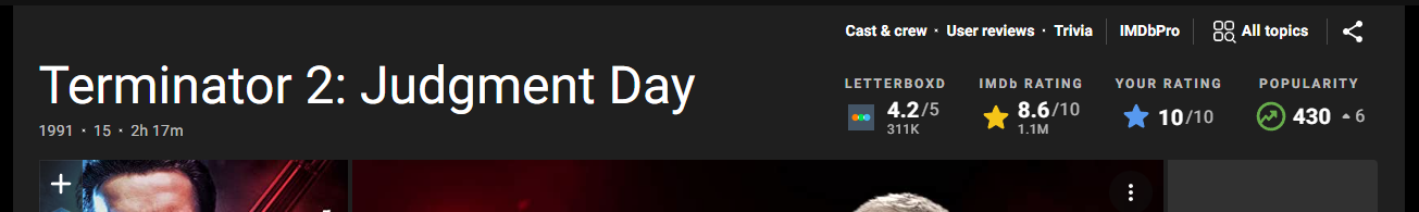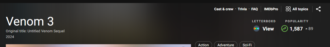 Upcoming release with a Letterboxd link added (note that the Popularity Meter causes the ratings bar to be shown despite not being available to rate - this is necessary for the script to insert the correctly styled link):