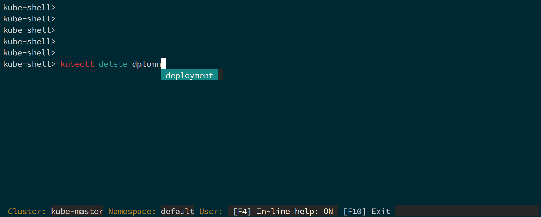 Kube-shell is inspired by AWS Shell, SAWS and uses awesome Python prompt toolkit