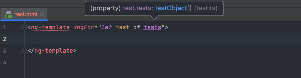 *ngForloop. In this loop the type is not correctly passed on as can be seen in following screenshots.When changing the testObject to: