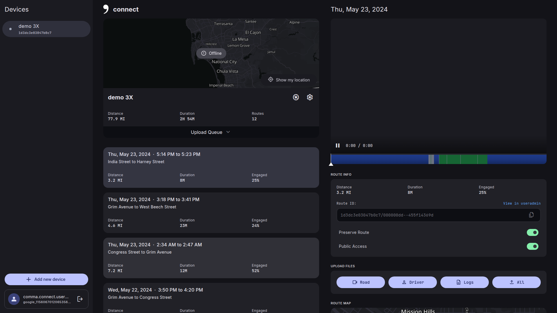 the transition between offline and online with offline messages present is undefined behavior (could say "device offline" then messages appear, or "nothing to upload" then appear). existing behavior, created issue: https://github.com/commaai/connect/issues/354 ↩