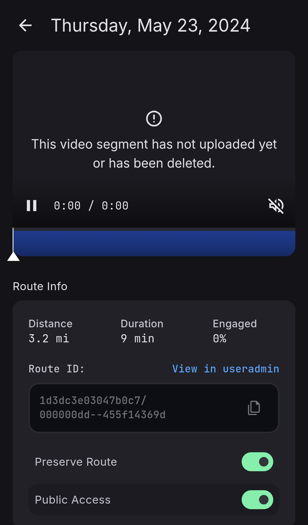 • add an explicit mute/unmute control to the dashboard route video player