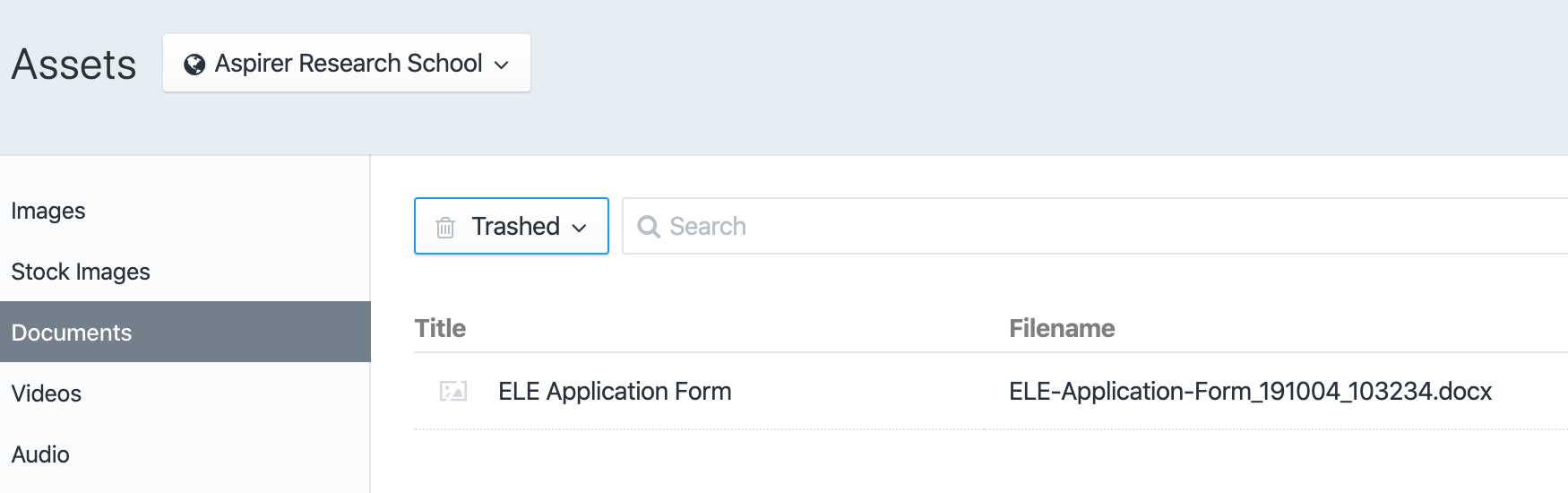 When deleting assets you can see them in the trashed list, but there is no option or a way to restore them.