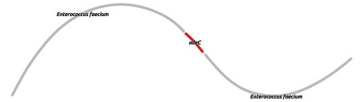 adeC gene in genome context of E.faecium. Target AR gene is shown in red.