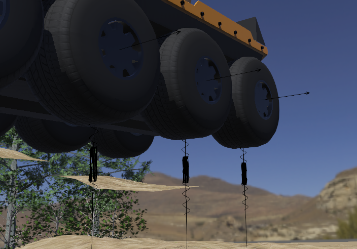 suspensionSpringConstantorsuspensionDamperConstantofHingeJointParametersis non-zero, a spring or respectively a cylinder is rendered. As this pertains just toHingeJointParameters, only Hinge2 and Hinge joints are affectedjointParametersalso exposes aspringConstantanddampingConstant, however also rendering these might be excessive if not misleading. Visually it wouldn't be easy to distinguish these from the actual suspension ones, and moreover these constants are intended to affect the sponginess of the joint limits (the stops), so also rendering them like a suspension might be slightly misleading.Linescale 0.1