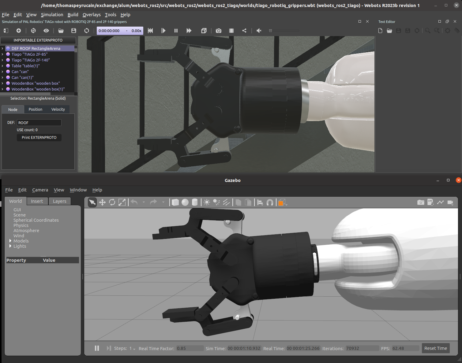 It can be check with this world: projects/robots/pal_robotics/tiago/worlds/tiago_robotiq_grippers.wbt
