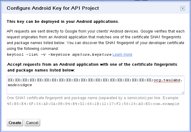 <meta-data android:name="com.google.android.maps.v2.API_KEY" android:value="NEW_VALUE"/>with the value of your newly created API key (red rectangle below). - Build the android gcs in release mode
