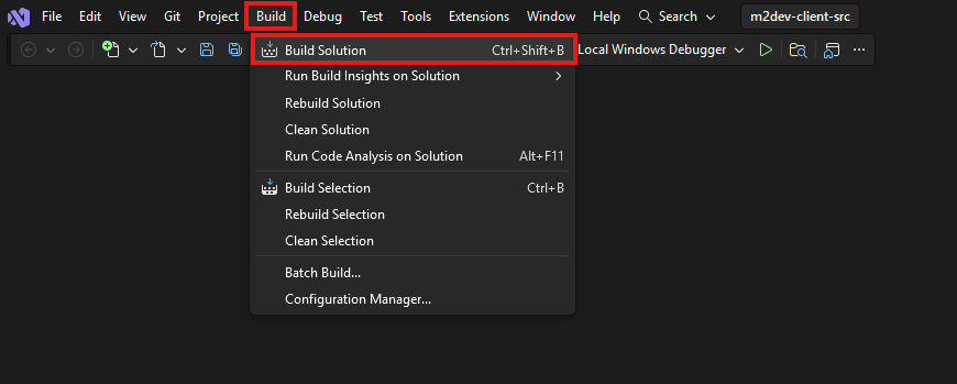 Finally, click on the Build option at the top and select Build Solution, or simply press CTRL+SHIFT+B in your keyboard with all the projects selected.