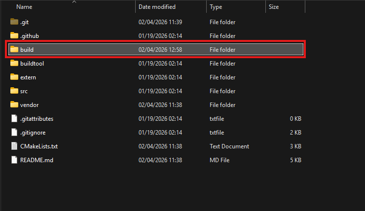 cdin your project's root working directory and initialize the build with this command:cmake -S . -B buildA new