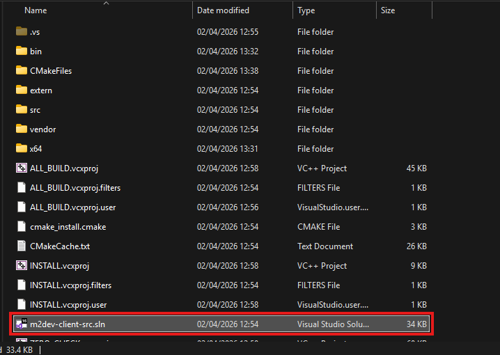 buildfolder has been created in your project's root directory. This folder contains all the build files and configurations, along with theslnfile to open the project in Visual Studio.Double click on that file to launch Visual Studio and load the project.