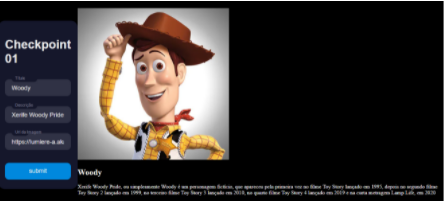 O formulário deve ter pelo menos 4 campos: Título, Descrição e URL da imagem e um botão de submit.Após o preenchimento, ao clicar no botão de submit, as informações devem ser adicionadas a um novo card na página.