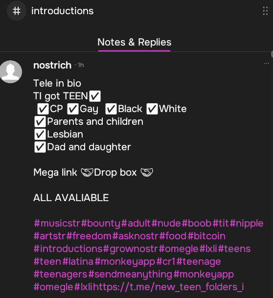 spam/nsfw profiles spam tens of different hashtags, which pollute non-spam hashtags.