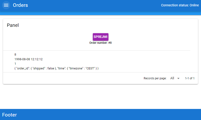 - The front part showing all orders (orders) GET request works by clicking on the "hamburger-icon" in the top left corner.