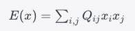 E(x) = \sum_{i=1}^{n} \sum_{j=1}^{n} Q_{ij} x_i x_j