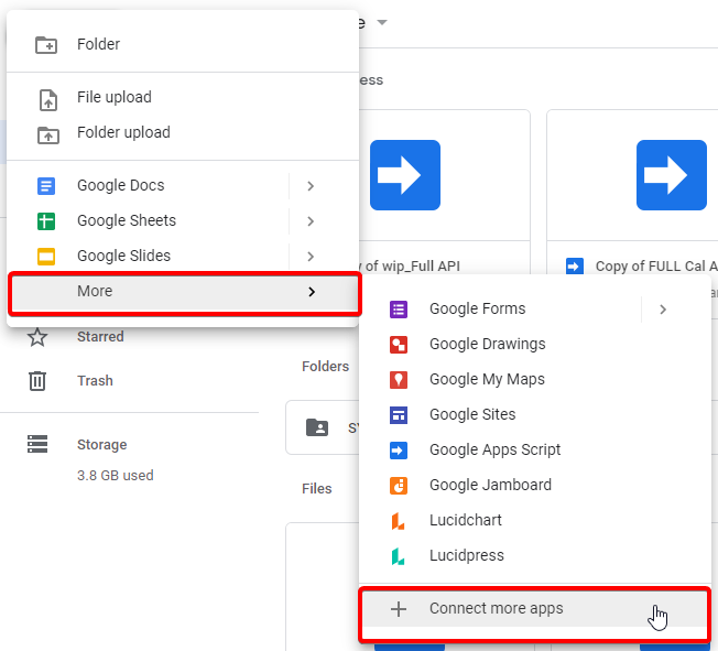 Go back to Google Drive and click "New" > "More" > "Google Apps Script"