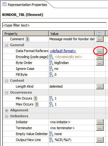 Representation Propertieson the right, find the propertyData Format Referenceand click on the button shown below: