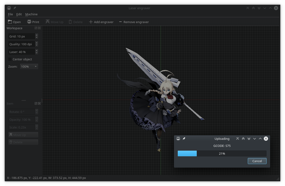 - Allow to change speed or power of laser while engraving (live parameters customization)