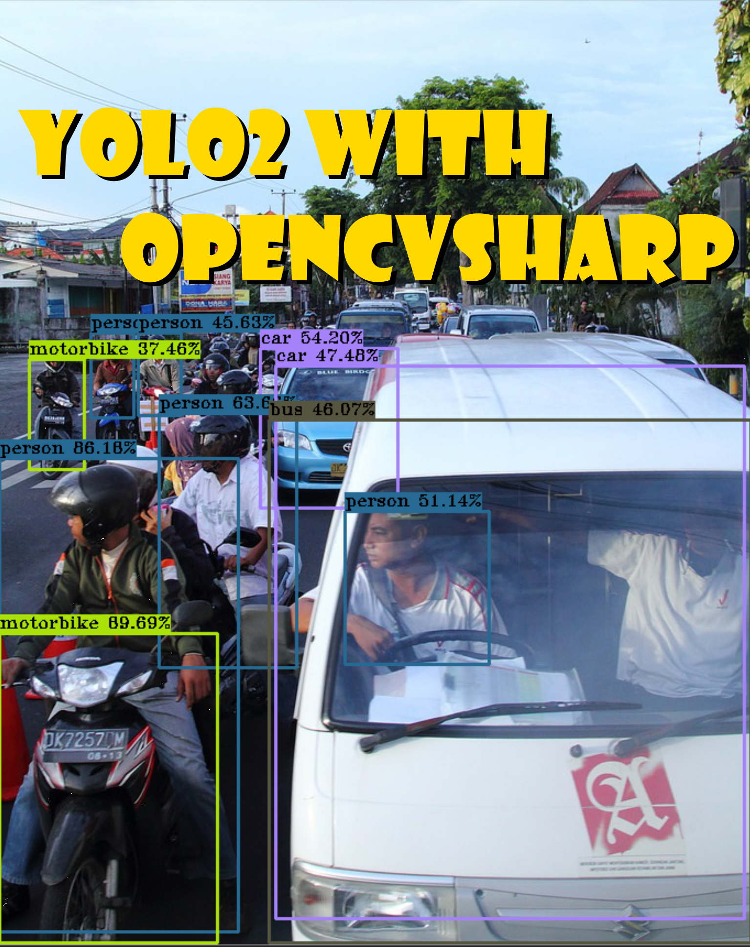 OpenCvSharp Dnn module with Yolo2 This is a demo of implement pjreddie's YOLO with OpenCvSharp using C#. more detail please check blog artile : [C#] OpenCvSharp DNN with YOLO2 result