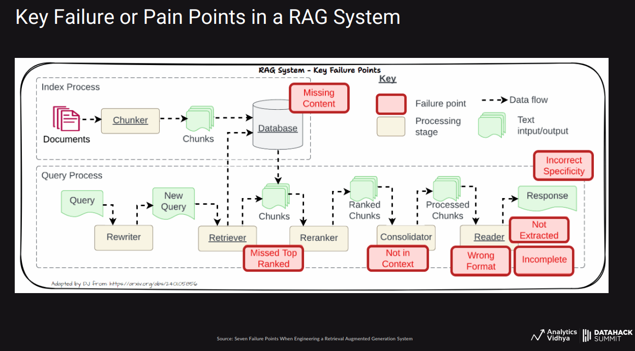 This session is inspired by the famous paper “Seven Failure Points When Engineering a Retrieval Augmented Generation System” by Barnett et al., which discusses some of the major challenges and points of failure in RAG Systems. However, clear solutions to these challenges are not mentioned in detail.