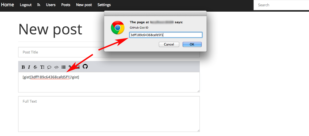 For this click on the Gist tag on the panel, copy the gist id from the github gists page and paste it to the dialog window.