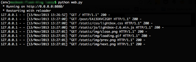 Start mongod, then when you in project dir with actived environment just type in terminal