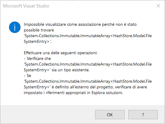 The wizard is unable to recognize System.Collections.Immutable.ImmutableArray<HashStore.Model.FileSystemEntry>.
