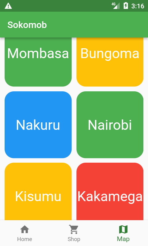 | Map Screen | Location services | City list, interactive maps, seller locations |