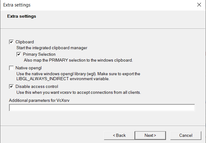 In order to run the Linux version on WSL you need an X11 server like VcXsrv launched with the following settings: