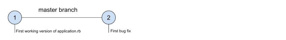 could be visualized as a timeline composed of two commits.