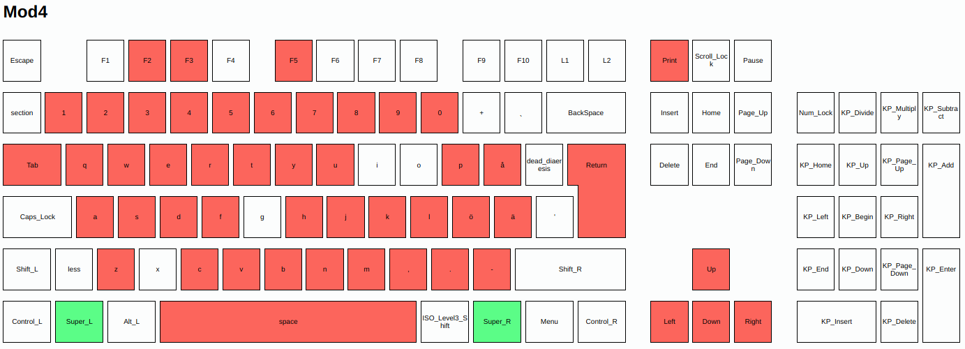 Available keybindings per modifier group