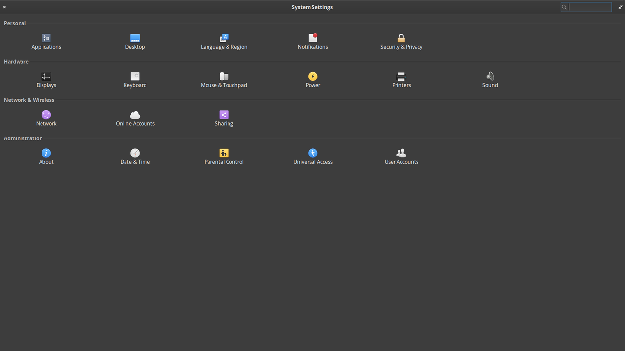 First, let's take a look at the competition. GNOME redesigned gnome-control-center a few years ago, and it looks great.