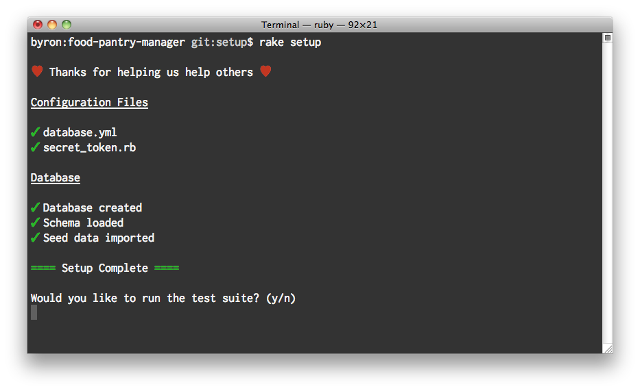 empower you to create a rake setup task that looks like this: