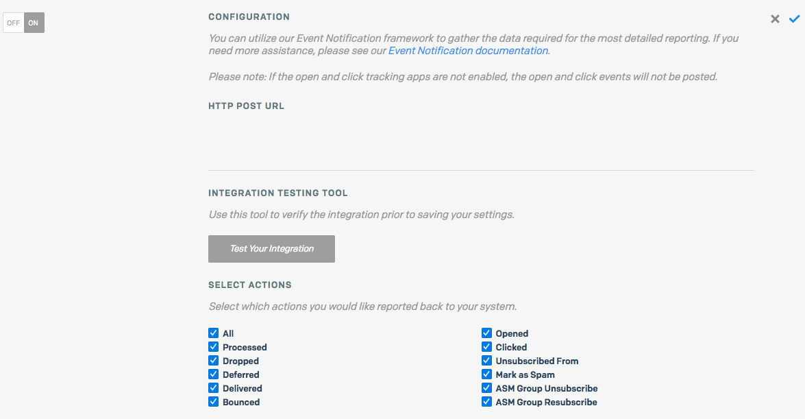 In your SendGrid account, head to https://app.sendgrid.com/settings/mail_settings. Then find Event Notification. This section is where you will tell SendGrid where to POST. (If you don't mind consuming everything, you don't have to pay any attention to those boxes. The lambda handler will handle all of that for you.)