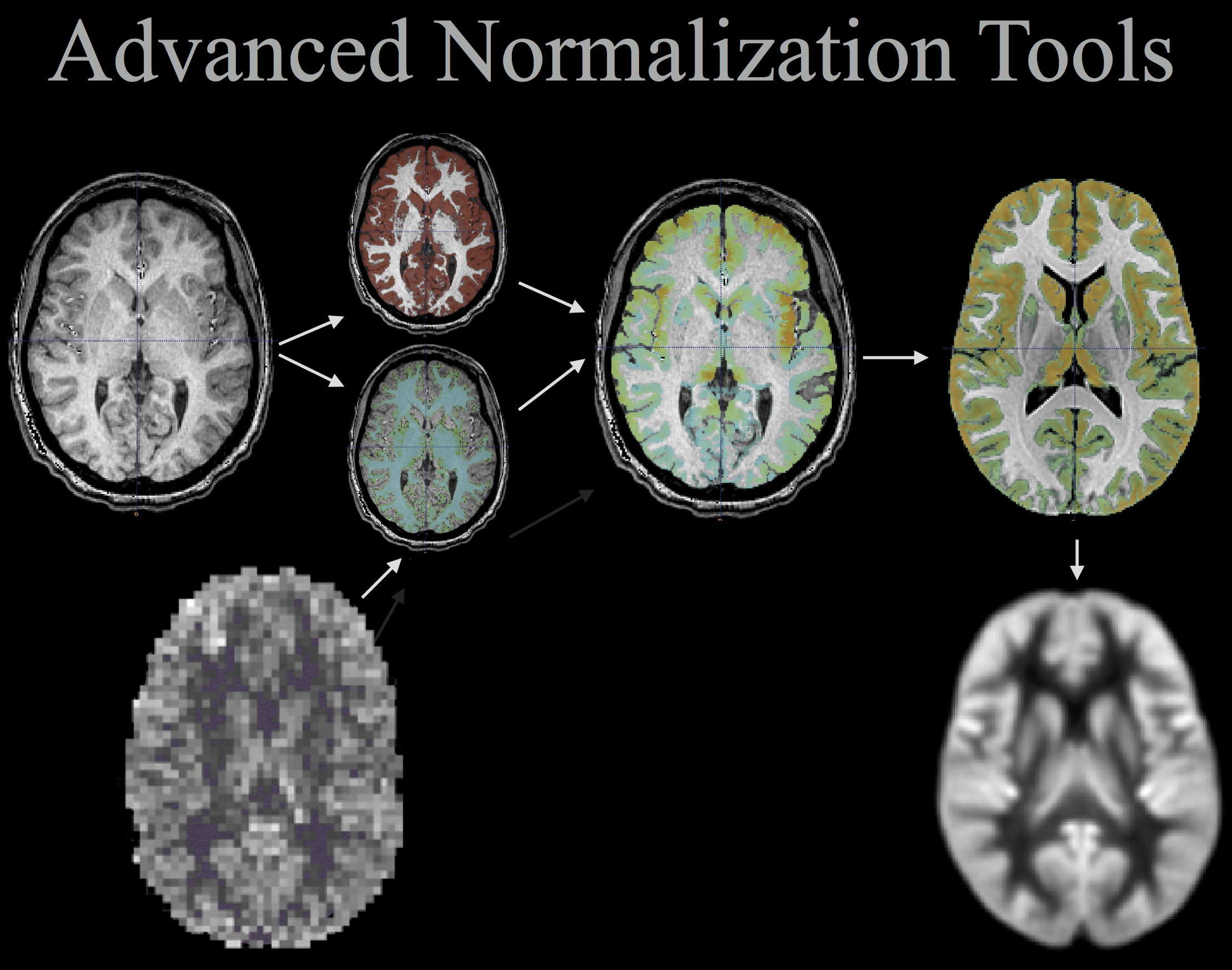 ANTs computes high-dimensional mappings to capture the statistics of brain structure and function. See the collection of examples at this page.