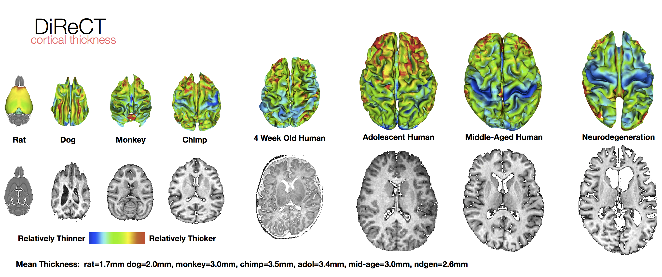Atropos Multivar-EM Segmentation (link), Multi-atlas methods (link) and JLF, Bias Correction (link), DiReCT cortical thickness (link), DiReCT in chimpanzees