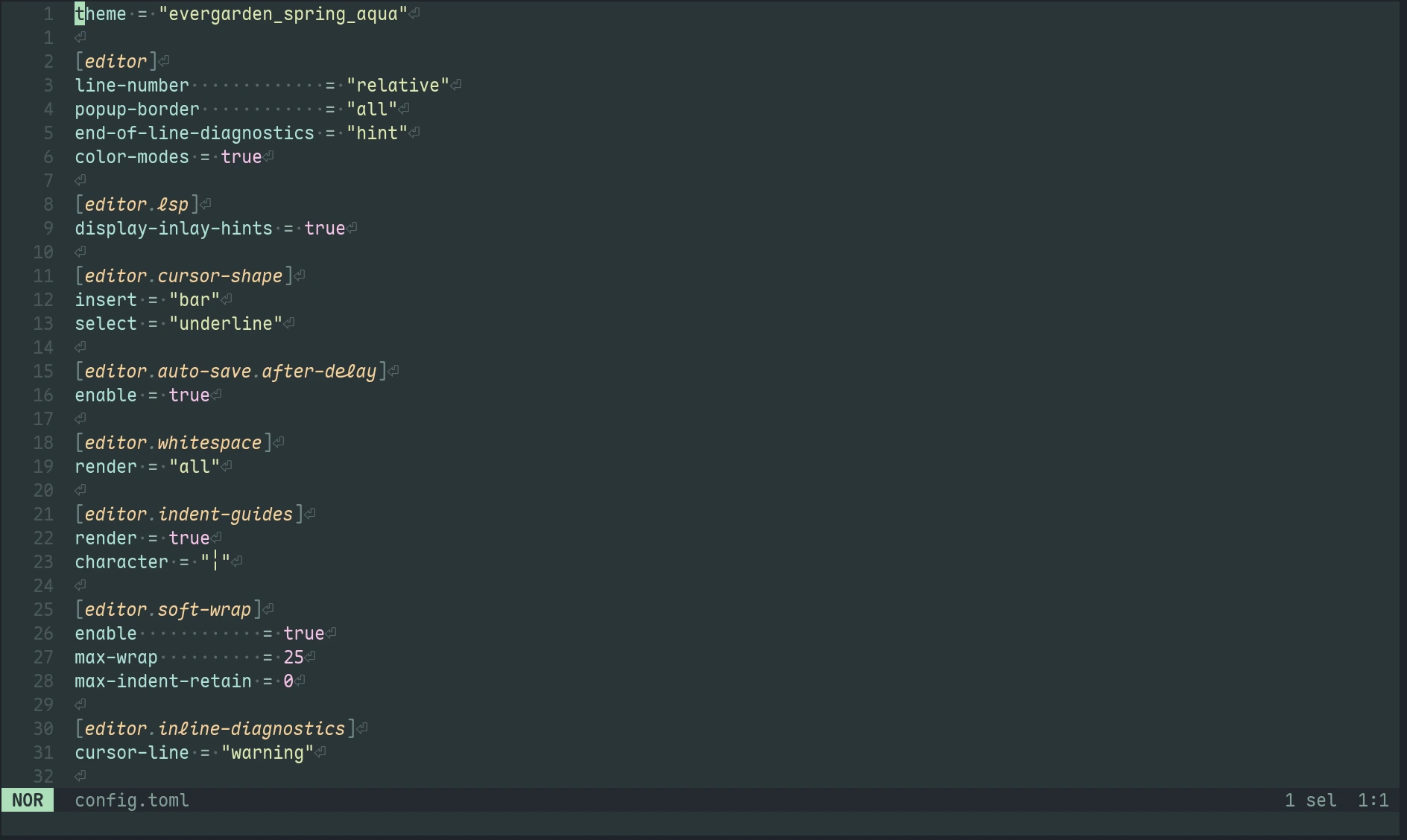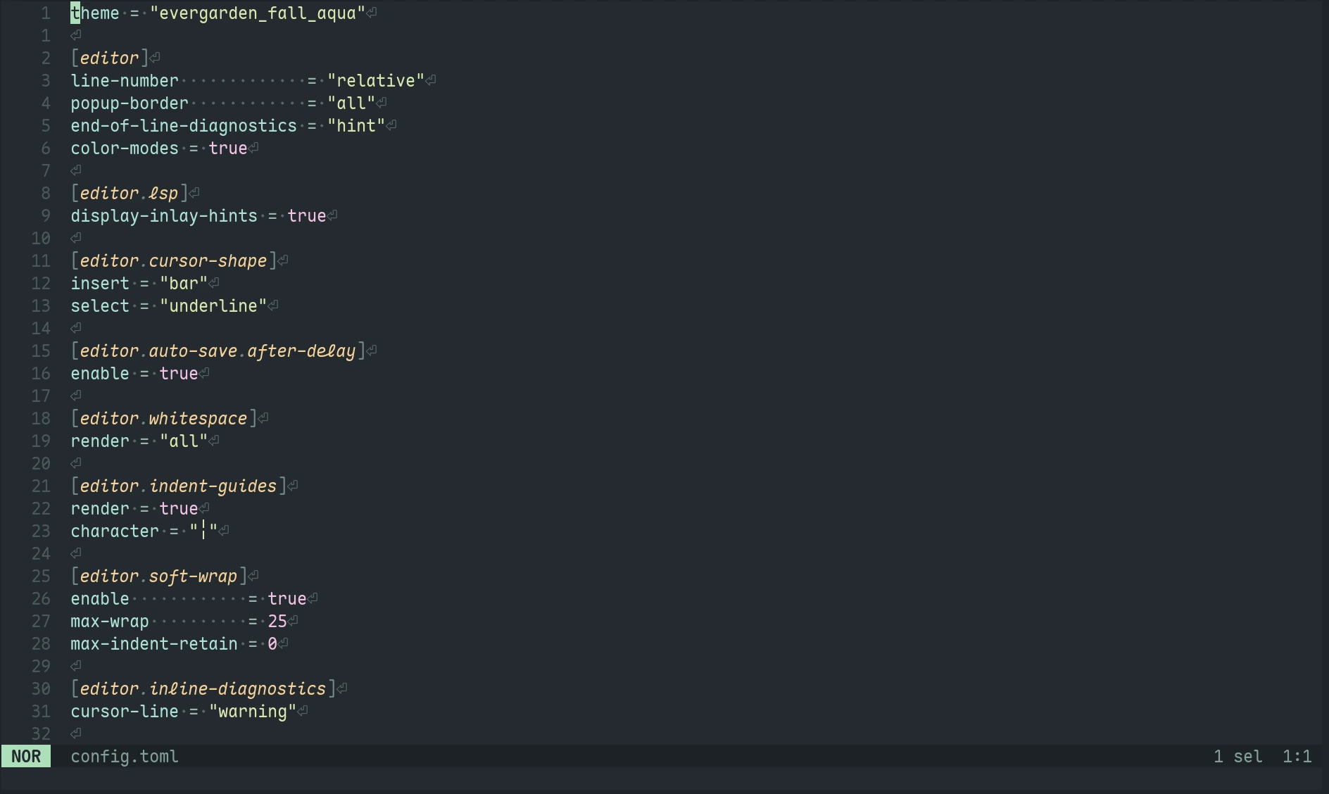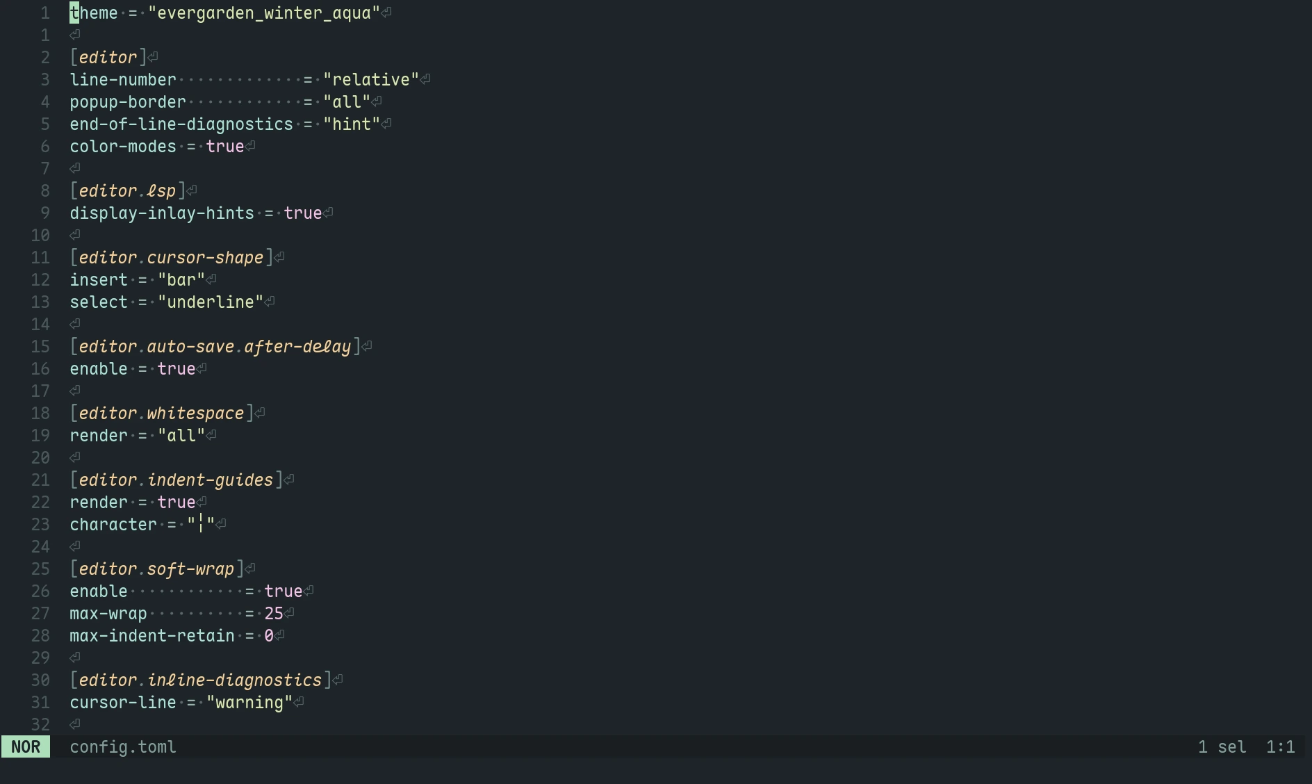 | Linux, MacOS | ~/.config/helix/themes/ |