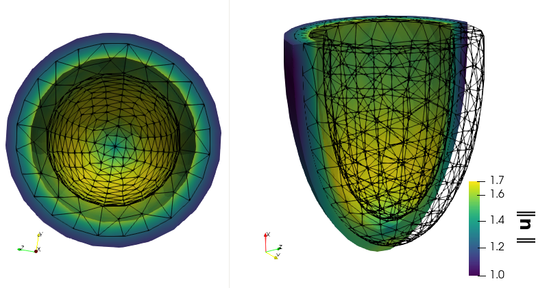 Here is a minimal example of how to use fenicsx-pulse to solve a simple cardiac mechanics problem.