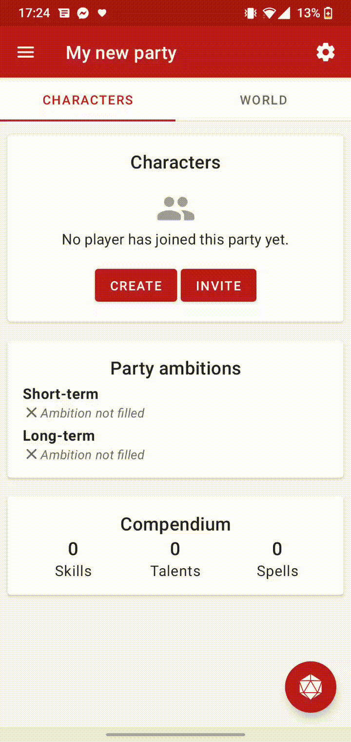 When you create the Party, you become the Game Master (GM) and you are sent to the GM screen. From here you can manage all your Party-related content.