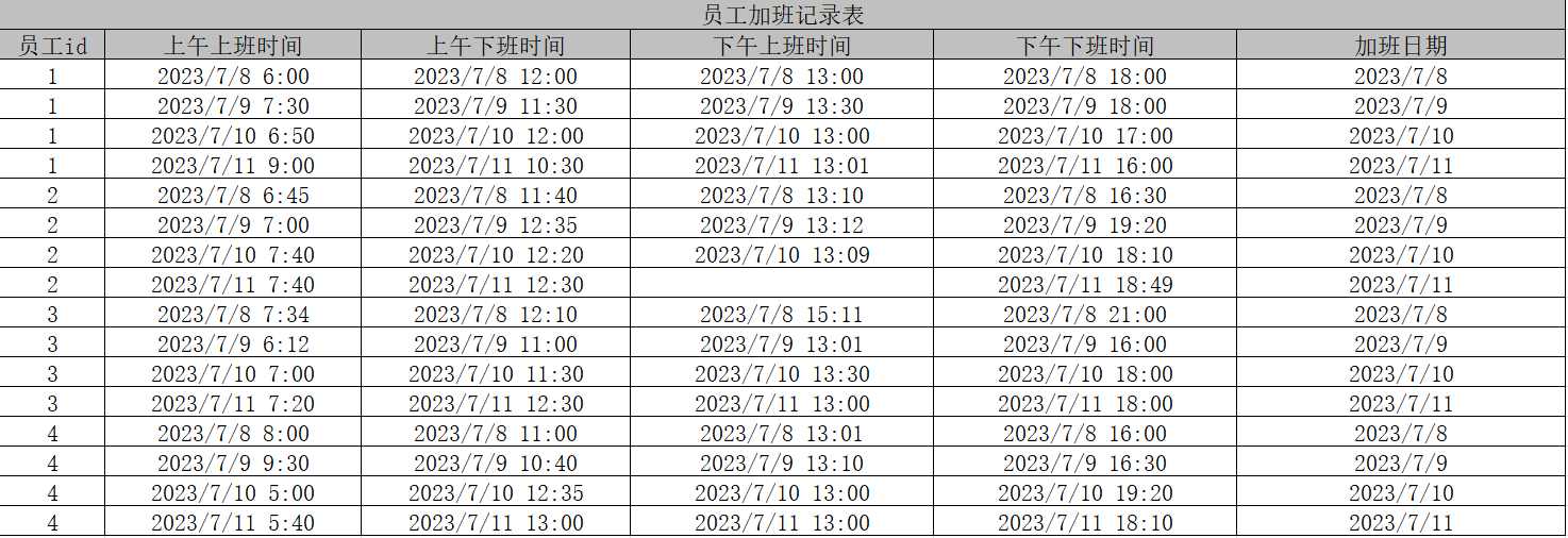 - 若不是以上任何情况,则员工加班状态设置为正常。