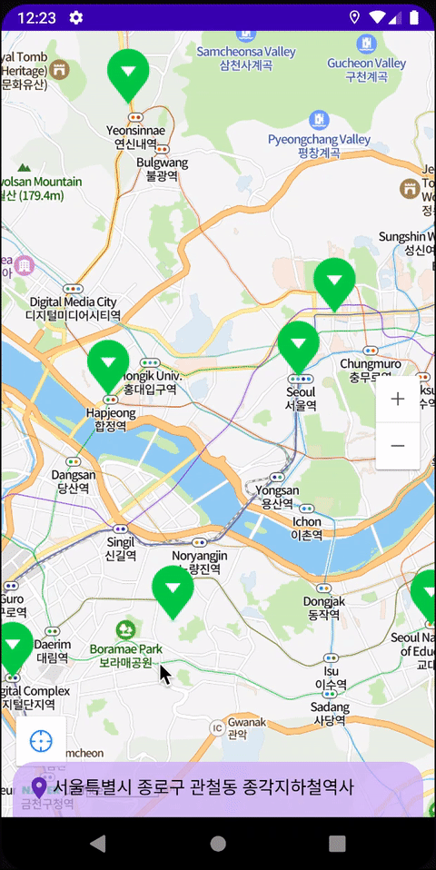 - 등록한 마커들을 BottomSheet에서 리스트로 확인합니다.