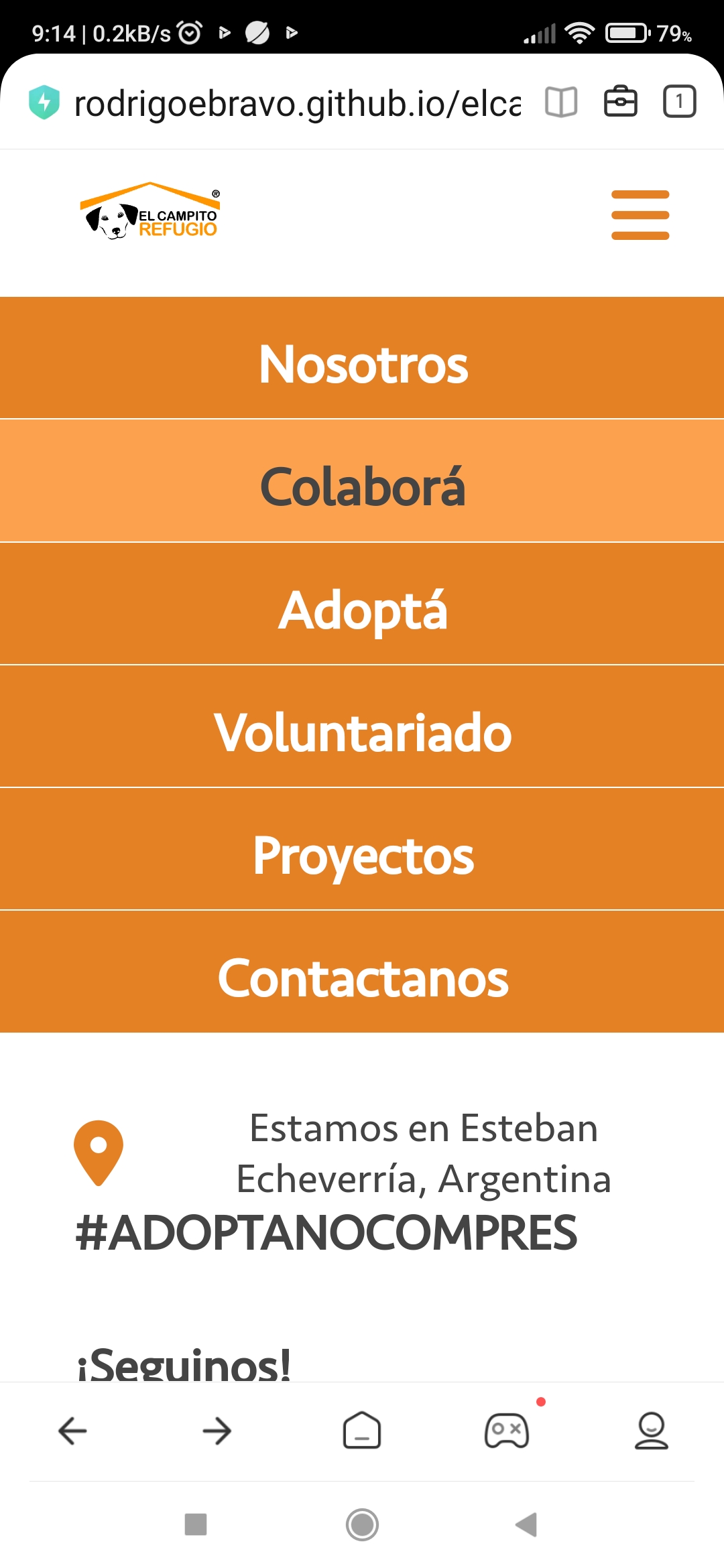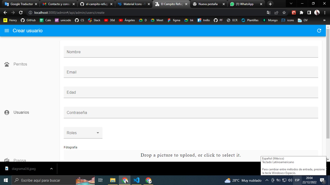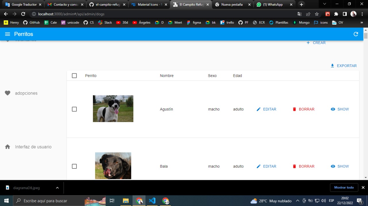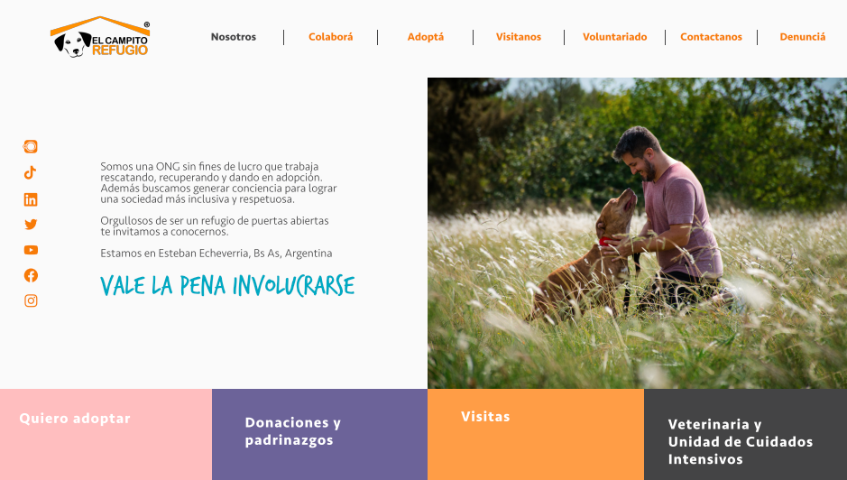 Proyecto Full Web Stack de un portal web para dar a publicidad la acción de la ONG el campito Refugio. El usuario podrá además de tomar conocimiento, realizar donaciones, solicitar visitas, convertirse en voluntarios entre otros. El administrador podrá, a través de un panel de administración, incorporar diferentes input, desde información, nuevos perros, cambio de fotografías, podrá borrar, modificar o confimar roles de usuario...