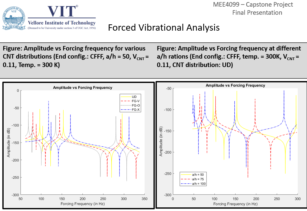 Analyzed critical buckling load and natural frequencies of rotating functionally graded carbon nanotube reinforced polymer composite plates (FG CNT-RPC). The dynamic properties of rotating FG CNT-RPC square plates were studied under various rotational speeds, temperatures, CNT distributions, volume fraction and boundary conditions. MATLAB was used to implement the finite element formulation for the analysis.