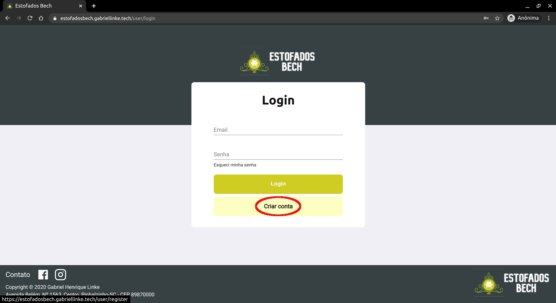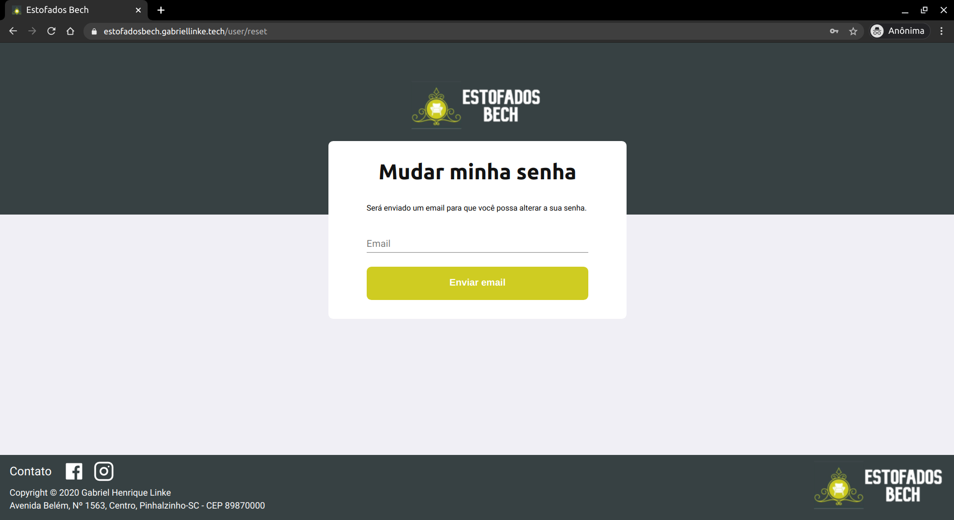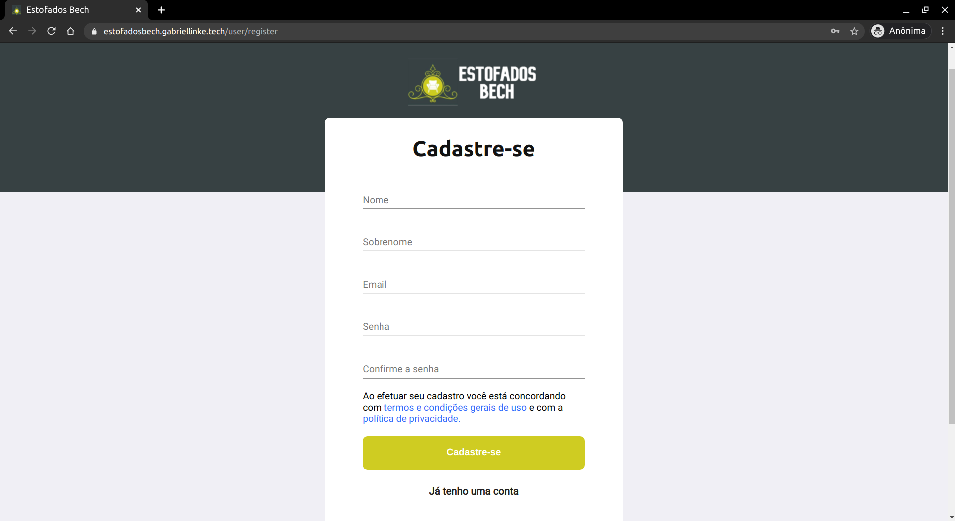 Atualmente o website tem uma versão de demonstração, com o seu back-end hospedado no Heroku e o front-end hospedado na Netlify. Para testar essa versão basta acessar o site https://estofadosbech.gabriellinke.dev.br. Para ter acesso a uma conta com permissões de administrador, entre em contato com o desenvolvedor. Uma explicação sobre o funcionamento pode ser encontrada a seguir.