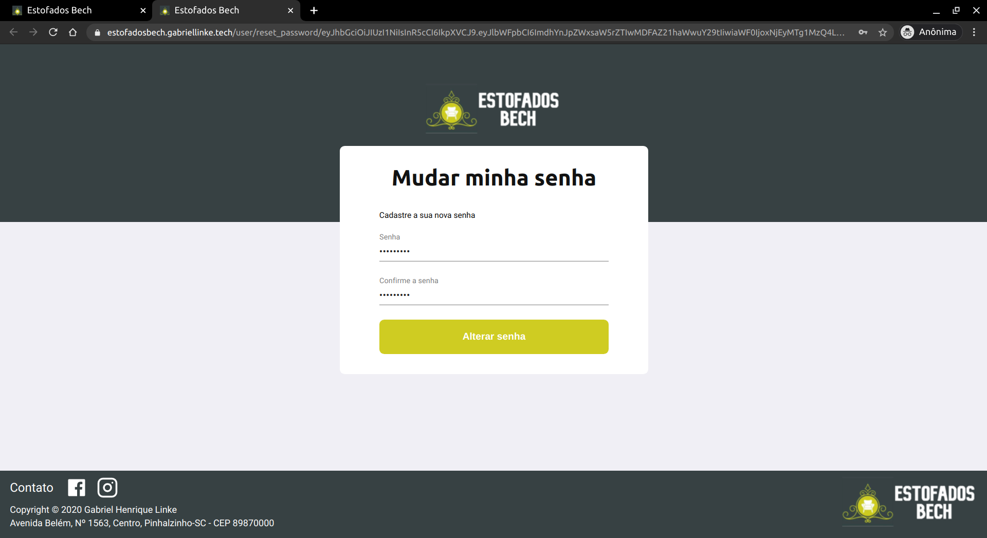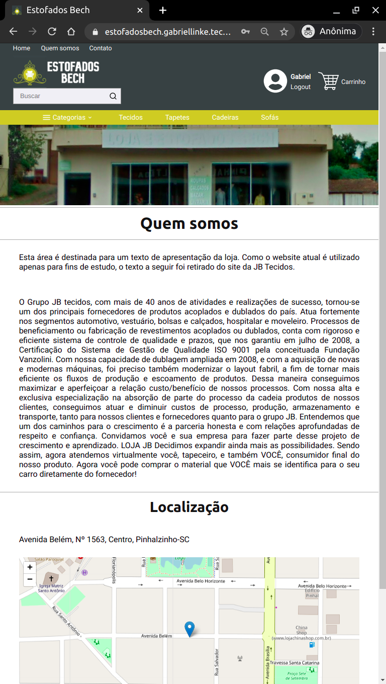 Este site foi desenvolvido em 2020 durante a pandemia do coronavírus. Como eu estava com tempo livre, pois as aulas estavam paralisadas, resolvi estudar um pouco sobre desenvolvimento web. Então, após estudar o básico sobre ReactJS e Node.js, surgiu a ideia de criar um e-commerce, com o intuito de me desafiar e tentar desenvolver novas habilidades. O site começou a ser desenvolvido sob o nome de "Meu Website" porém, após comentar com um amigo que eu estava desenvolvendo um e-commerce, ele sugeriu que eu tentasse desenvolver um website para a loja da família dele, a Estofados Bech. De início já gostei da ideia, pois não precisaria desenvolver algo tão genérico, e no fim talvez o trabalho pudesse ser aproveitado e utilizado numa aplicação real. Entretanto, atualmente o website serve apenas a fim de estudos.