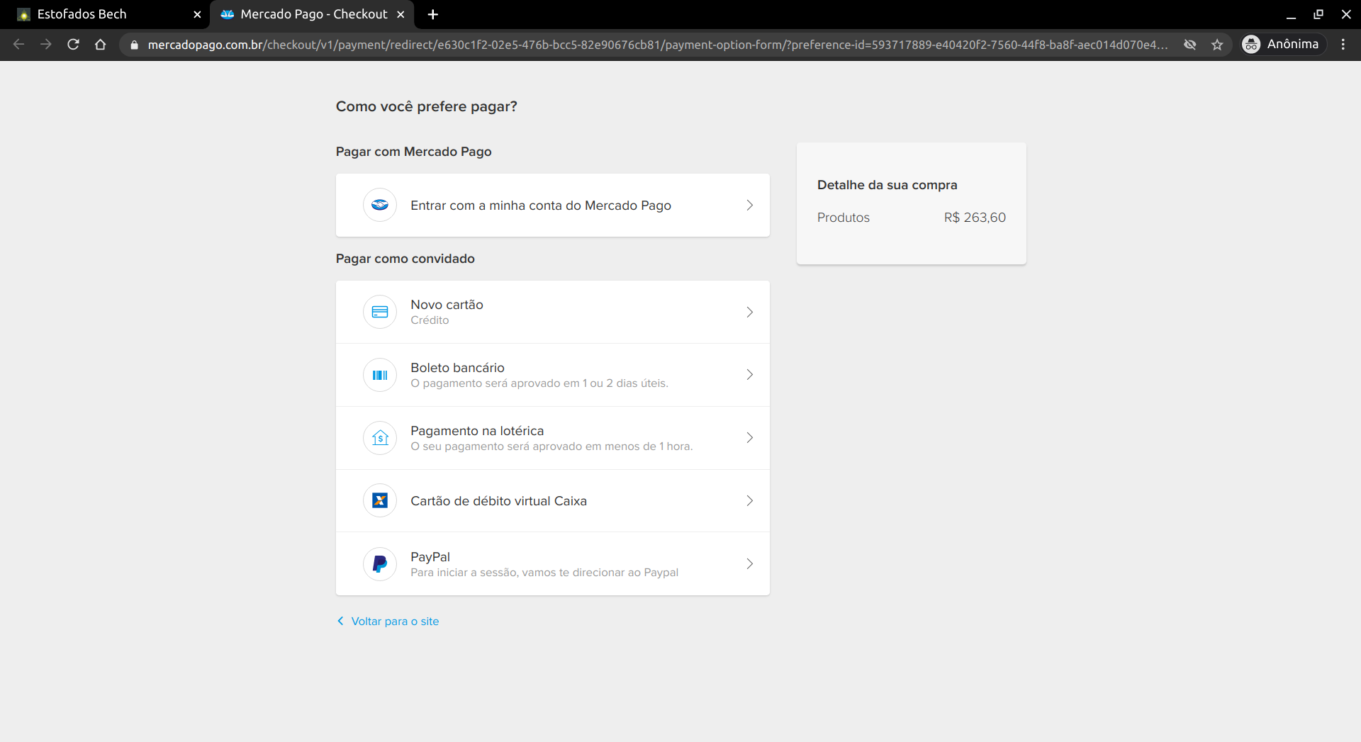 Figura 23: Página do Mercado Pago.